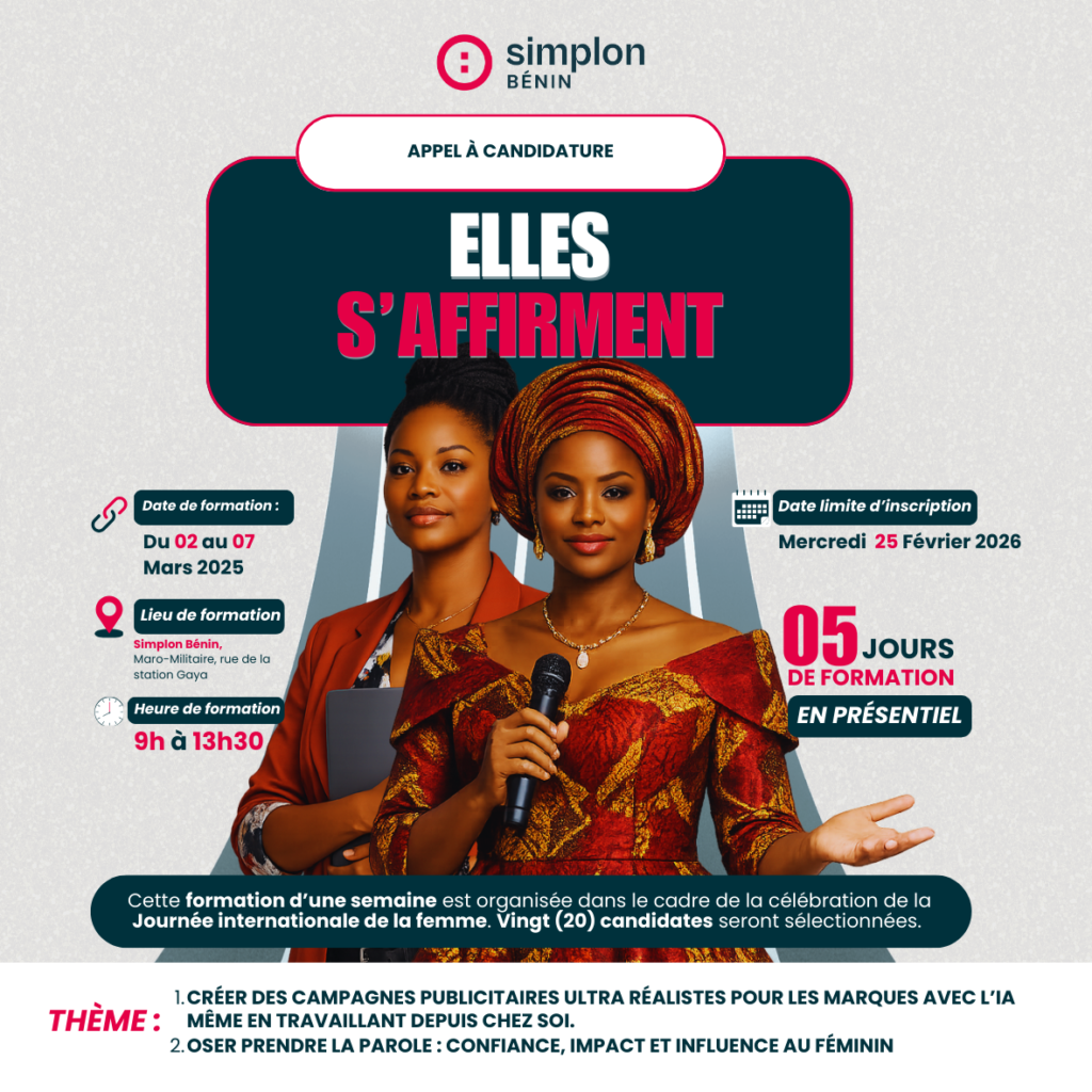 À l’occasion de la Journée internationale de la femme, Simplon Bénin lance une formation exclusive dédiée aux femmes qui veulent prendre leur place dans le numérique et s’affirmer pleinement.