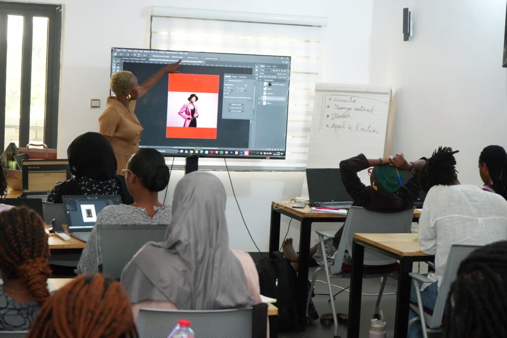 Depuis le 2 mars 2026, le local de Simplon Bénin à Cotonou vibre au rythme de la Journée Internationale de la Femme. Pendant cinq jours, 25 femmes participent à une formation unique destinée à renforcer leurs compétences en communication digitale, à explorer l’usage de l’Intelligence Artificielle pour la création publicitaire et à développer leur confiance à l’oral.