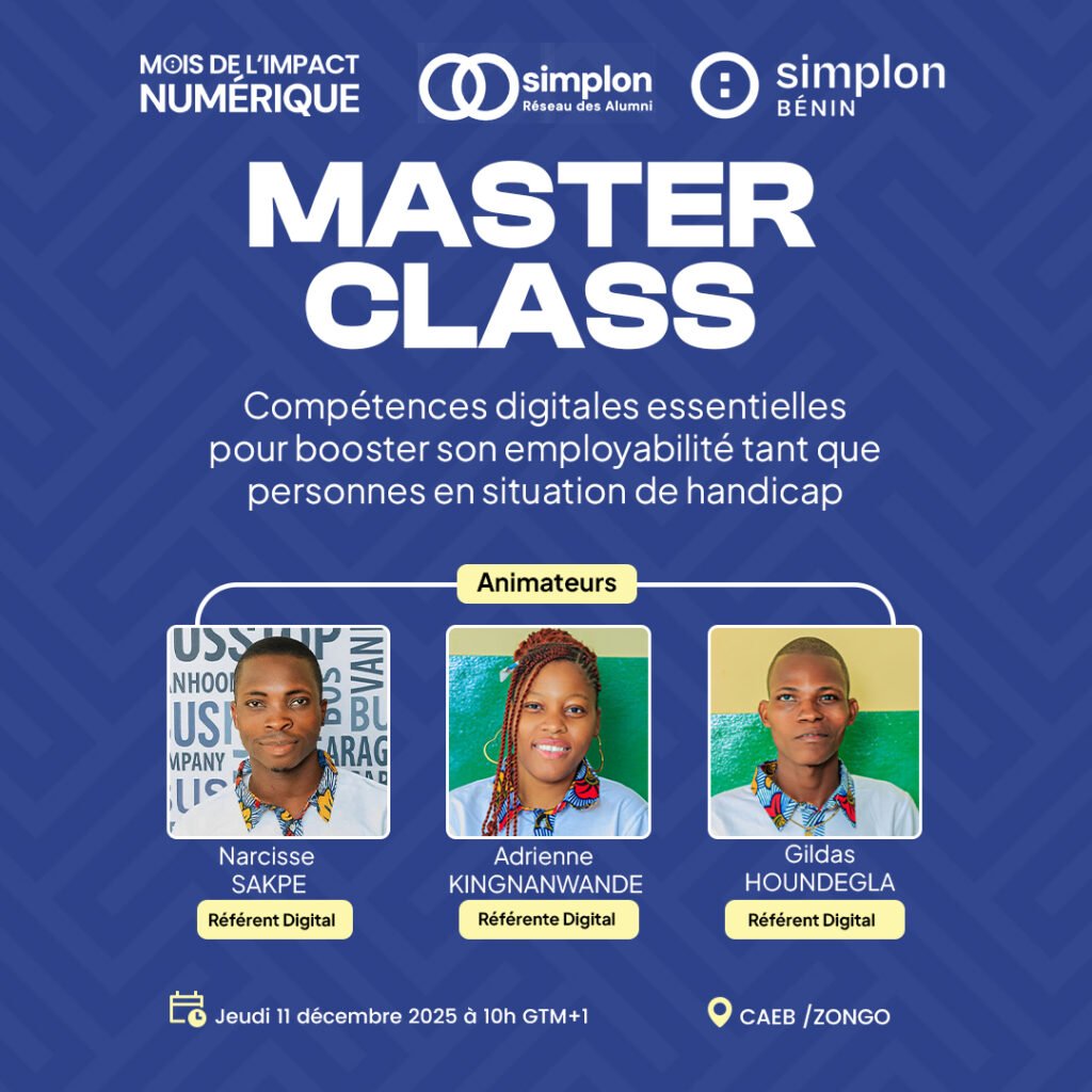 Dans le cadre du Mois de l’Impact Numérique, Simplon Bénin organise aujourd’hui à 10h une masterclass spéciale dédiée aux personnes en situation de handicap, en collaboration avec le Réseau Alumni Simplon Bénin.