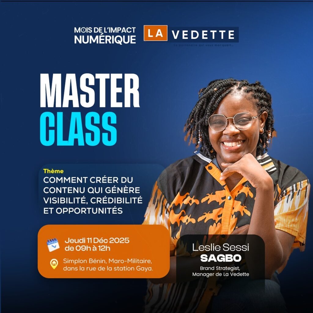 Dans le cadre du Mois de l’Impact Numérique, Simplon Bénin organise une session dédiée à la création de contenu à impact, animée par Leslie Sessi Sagbo, Brand Strategist et Manager de La Vedette.